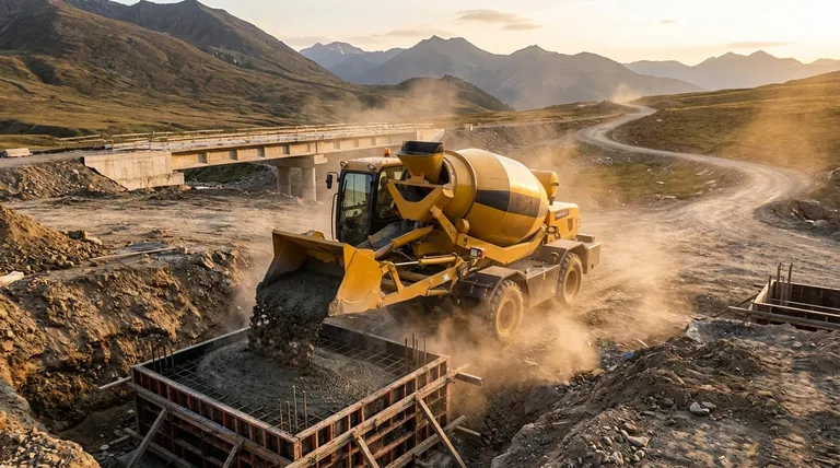 Um misturador autocarregável muda fundamentalmente como um projeto obtém seu concreto. Ele combina as funções de uma pá carregadeira, uma central de concreto e um caminhão betoneira em uma única unidade ágil.