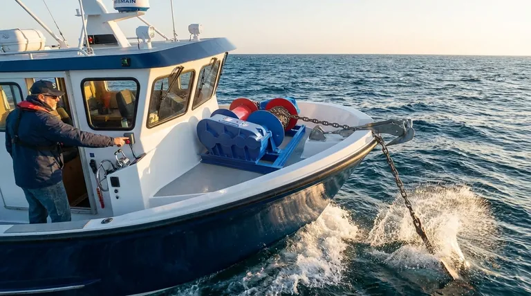 A vantagem crítica da queda livre automática não é apenas a velocidade, mas a capacidade de lançar a âncora com precisão a partir do leme, eliminando o atraso de se mover para a proa ou desacelerar lentamente.
